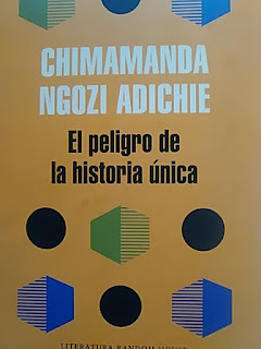 Sinopsis: "El PELIGRO DE UNA UNICA HISTORIA" ( Interculturalidad) de Chimamanda Ngozi Adichie. Es una de las escritoras africanas mas conocidas internacionalmente . Recoge aquí una charla que dio en la que hace una llamada a rechazar los relatos únicos. Con rotundidad y a la vez calidez, la autora reivindica la riqueza de la infinitud de historias que nos conforman y alerta de los peligros de reducir a una persona, un país o una cultura a un relato unívoco, pues solo cuando comprendemos que nunca existe una única historia, recuperamos " una especie de paraíso". Dice " Las historias importan. Importan muchas historias. Las historias se han utilizado para desposeer y calumniar, pero también pueden usarse para facultar y humanizar. Pueden quebrar la dignidad , pero también pueden restaurarla".